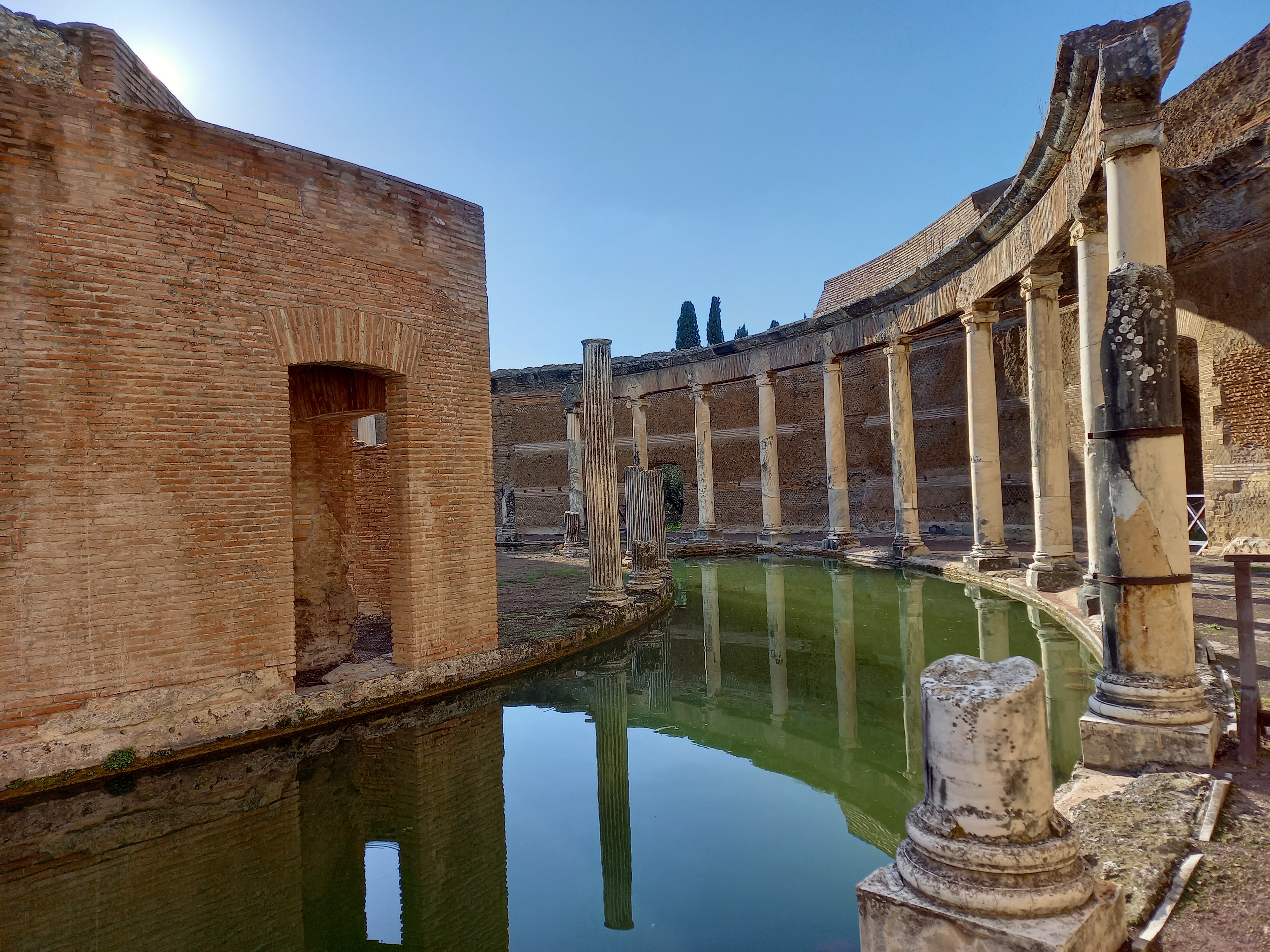 Una architettura unica nella sua concezione spaziale, un luogo di rifugio anche simbolico dalla quotidianita’, espressione in materia del pensiero originale ed elegante di un uomo tanto lontano quanto moderno. L’imperatore Adriano volle crearsi la sua “isola” , raggiungibile solo attraverso dei ponti in legno , una domus piu piccola all’interno della sua villa imperiale costruita nella campagna tiburtina