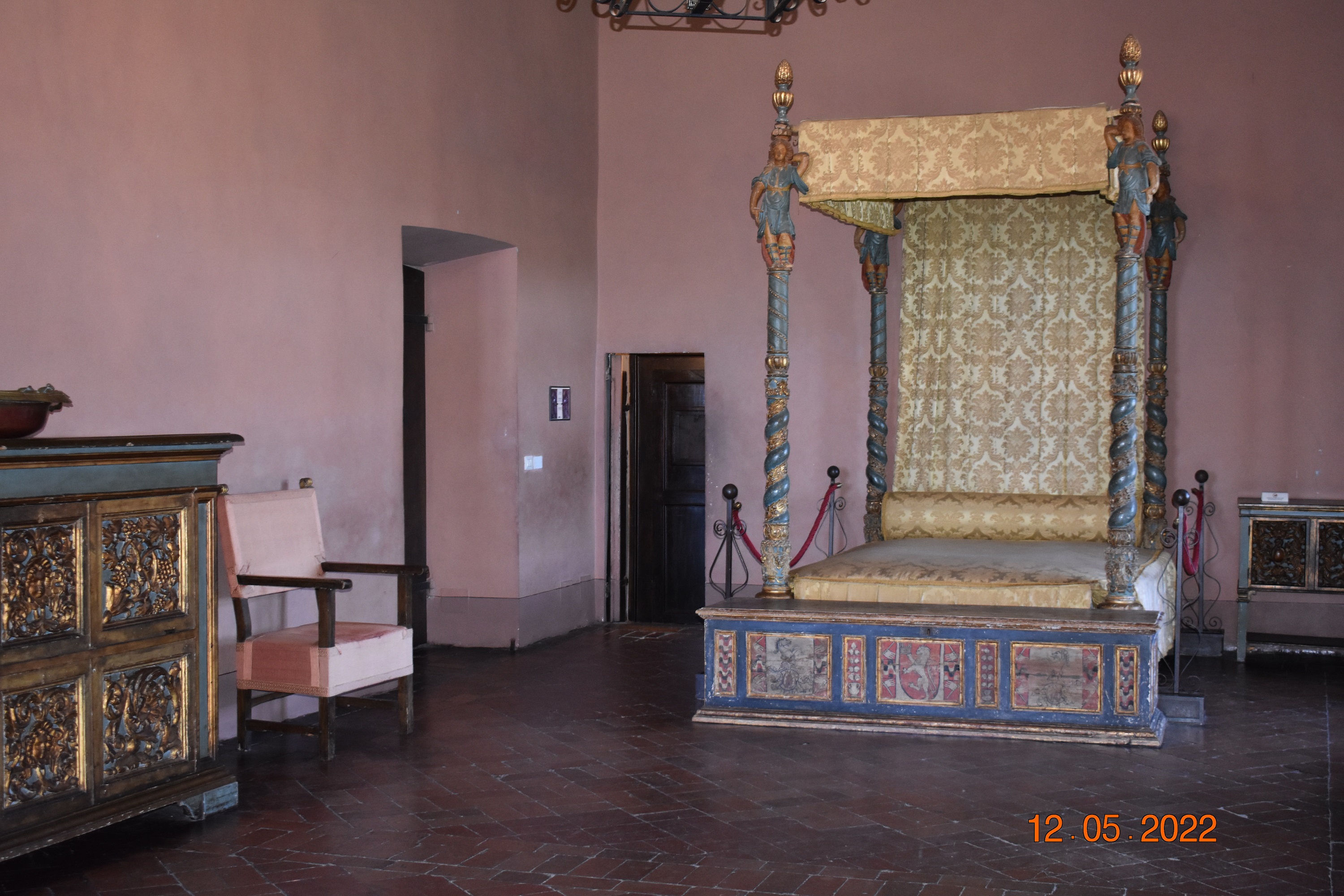 Mentre l’esterno appare austero gli ambienti interni sono raffinati, ricchi di preziosi arredi, soffitti decorati e pareti affrescate che riflettono l’evoluzione del gusto dal XV secolo sino al XX secolo.